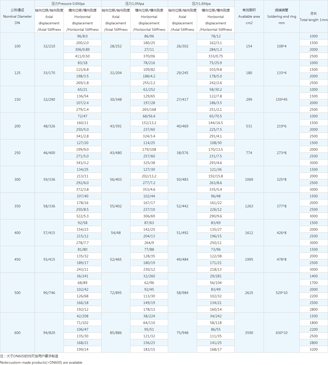 注:大于DN600的均可按用戶要求制造