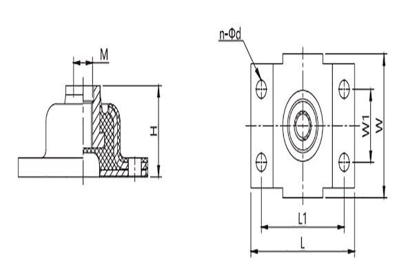 | L | L1 | W | W1 | H | n | d | M | |