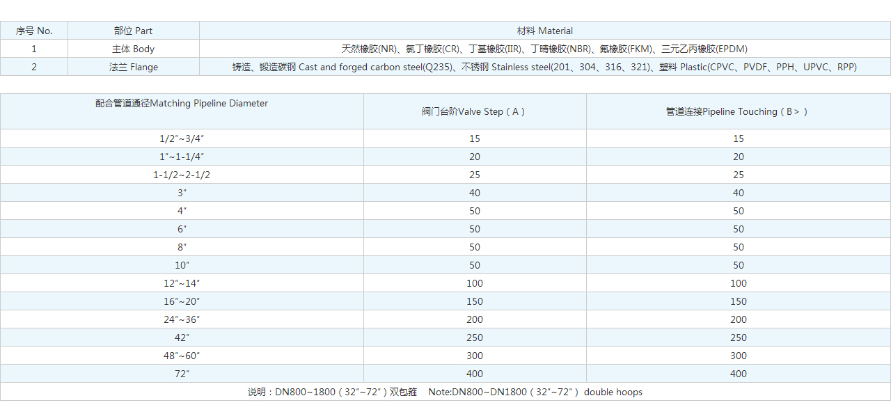 | 說(shuō)明:DN800~1800(32″~72″)雙包箍 Note:DN800~DN1800(32″~72″) double hoops | ||